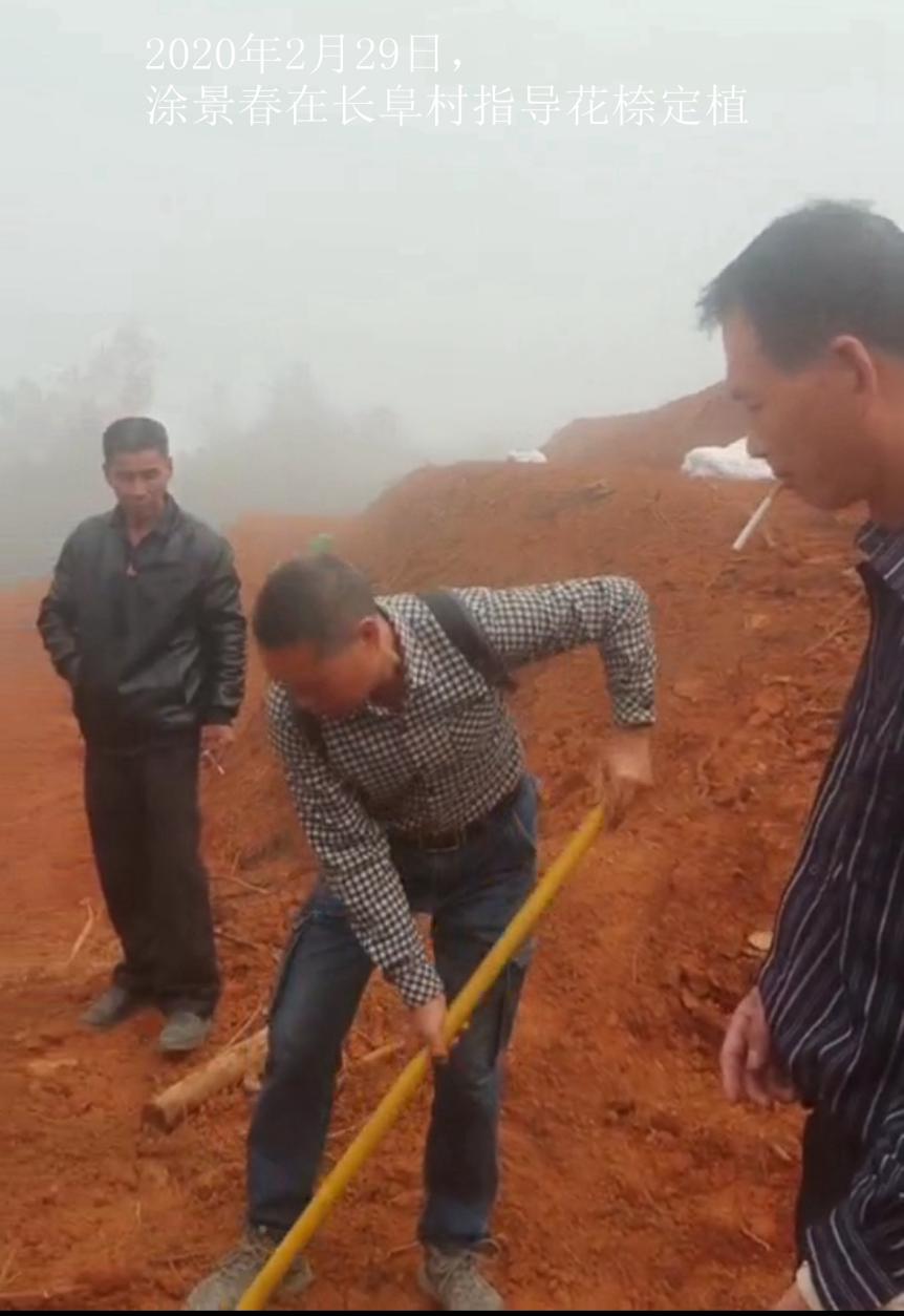 2019年开始,针对沙县花㮈种质资源濒临消失的危险,由涂景春老师牵头、指导,三明农校与沙县农科所技术合作,联合进行品种保护、开发利用研究。沙县夏茂长阜村是上世纪80年代夏茂花㮈场的所在地村,选定花㮈作为乡村产业振兴重点产业。为此,2020年2月20日,涂景春老师到长阜村黄坜山场指导果园开发建设;2月28日,到苗圃指导挖苗起苗;2月29日,到果山指导花㮈苗定植;3月11日,涂老师又与学校成教处人员到果场查看苗木定植成活率,现场指导苗木后期管理工作。