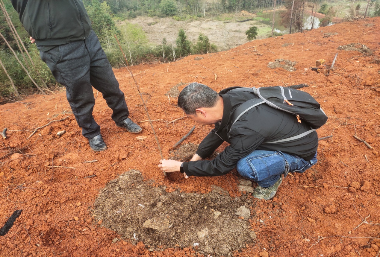(2月29日,涂景春老师示范指导花㮈苗定植)