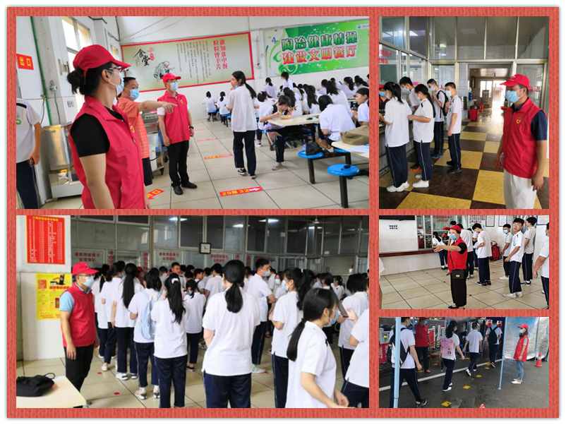 党支部专题召开支委会,精心策划、周密部署,由各支委带领党员小组开展志愿活动。党员同志们从上午放学第一批就餐学生开始全程对食堂就餐秩序进行维持和督导,督促和劝导同学们按规定间距1米以上排队买饭、定点同向就坐、遵守文明用餐秩序,不交头接耳、快速用餐等;下午学生返校时,在校门口维护入校秩序,协助值班人员进行体温检测登记,落实午检措施。