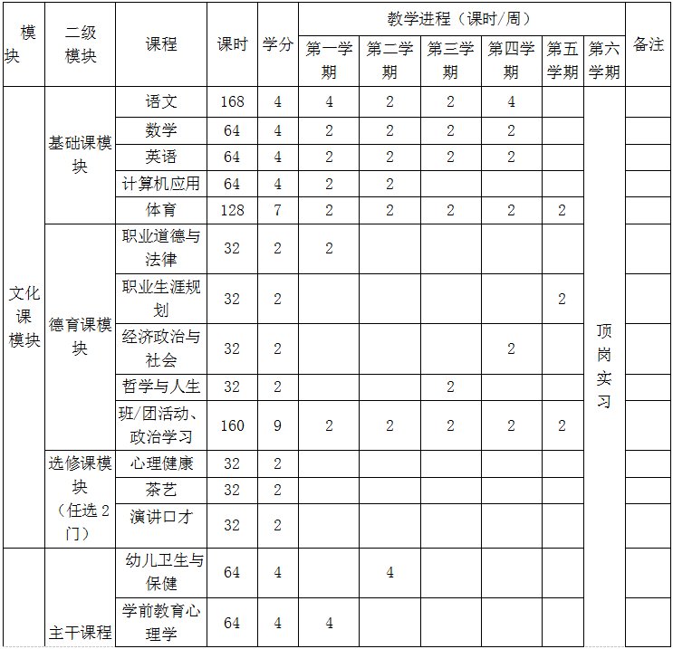 三明市农业学校 学前教育专业人才培养方案