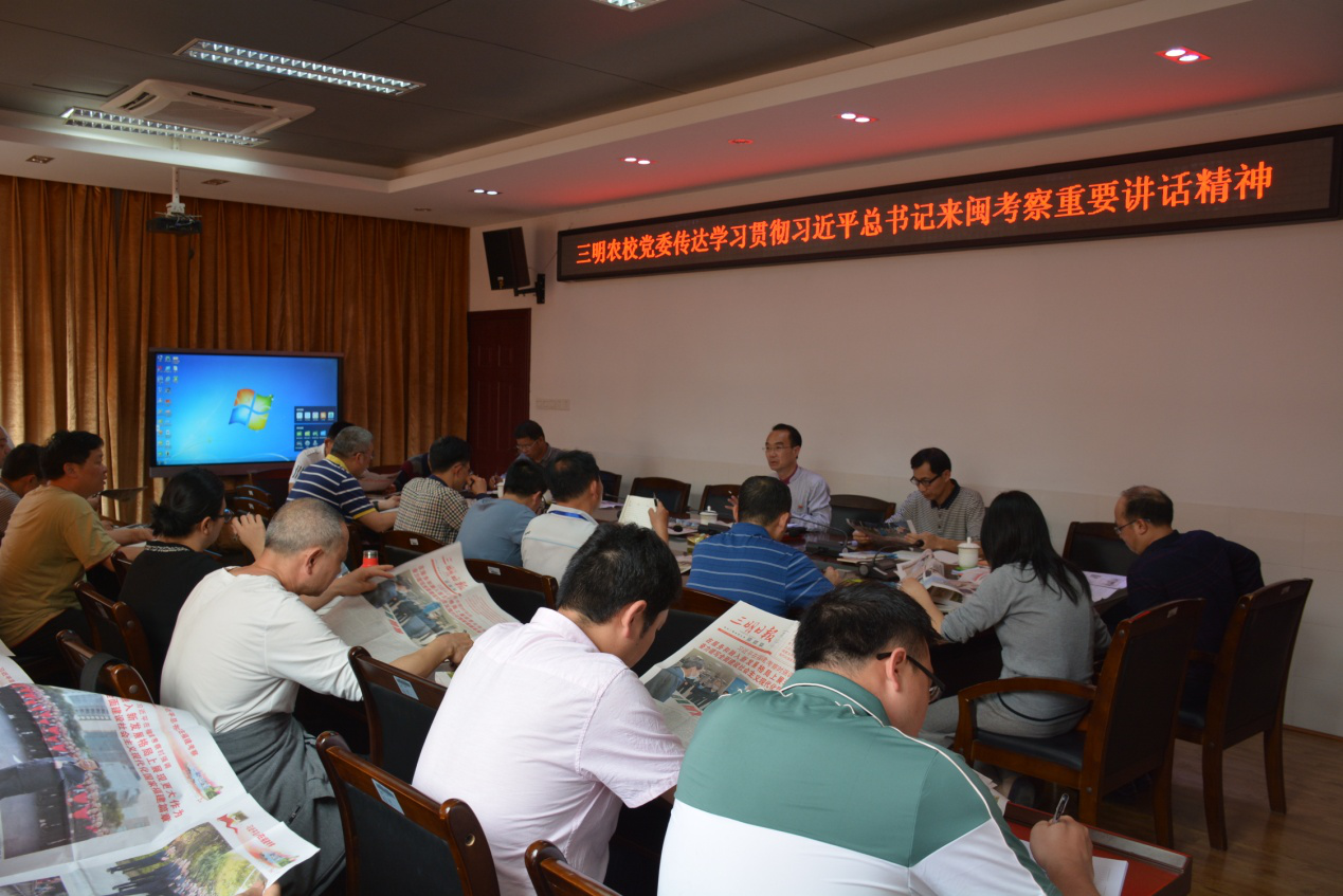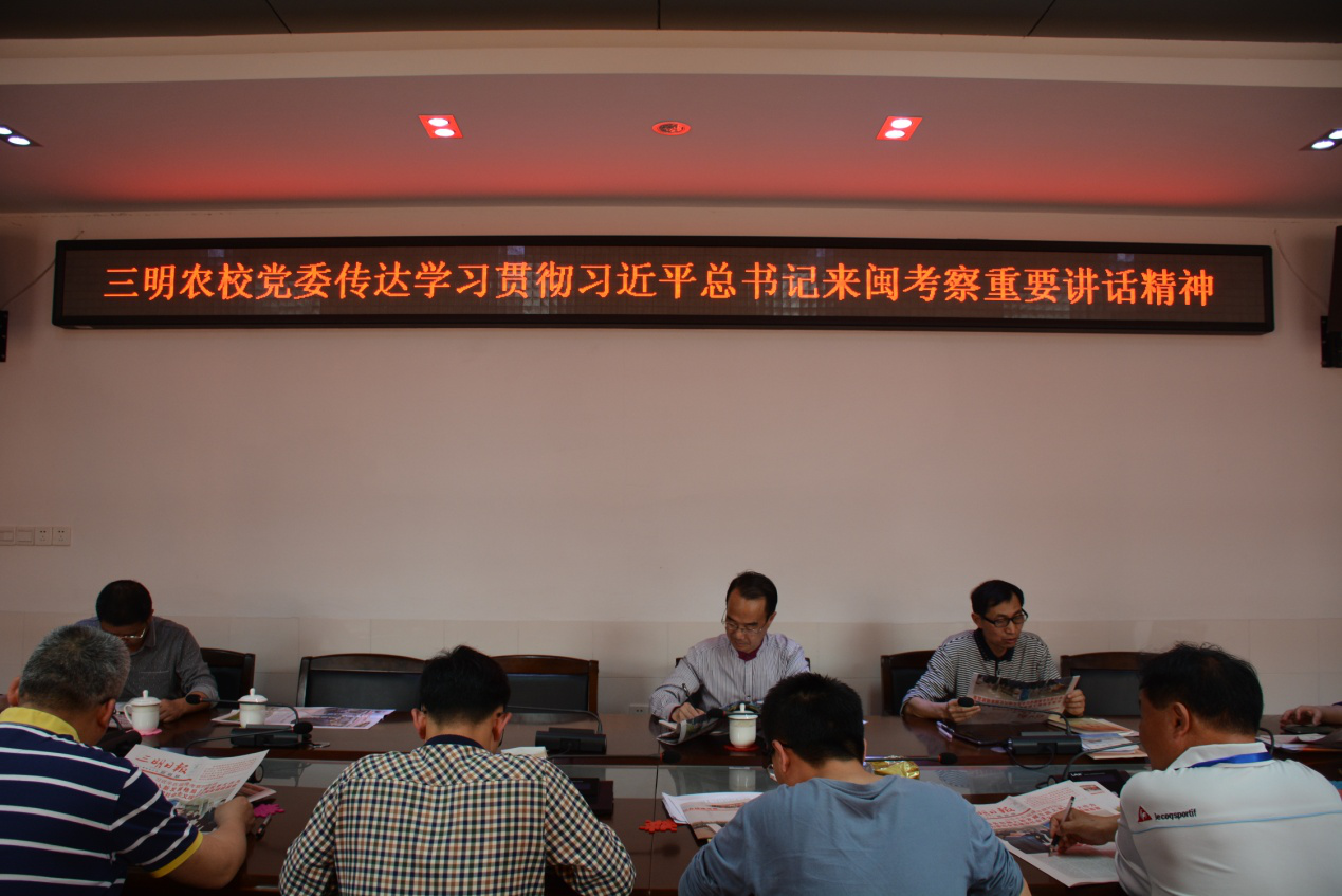 牢记嘱托 唯有拼搏 --三明农校党委传达学习贯彻习近平总书记来闽考察重要讲话精神
