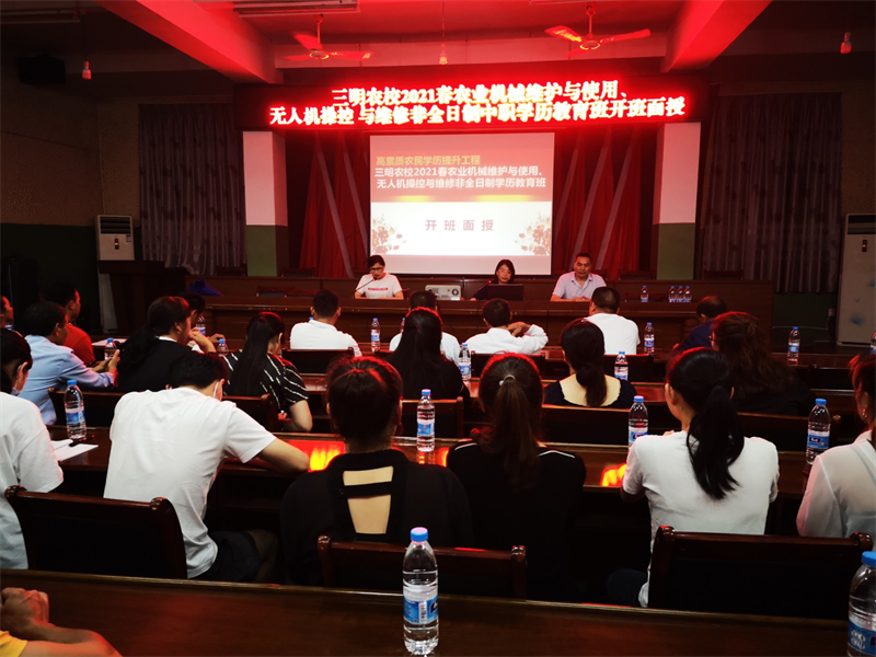 2021年5月25日,在尤溪县中仙乡党委、政府的大力支持下,三明农校2021春农业机械使用与维护、无人机操控与维护非全日制中职学历教育班开班面授活动在中仙乡人民政府会议室顺利举行。