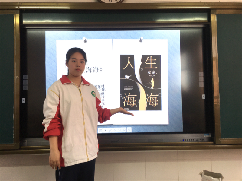 首先上场的是林安娜同学,她分享的是最受班级同学喜爱的余华的《活着》——这是一本有生命、有感染力的书!