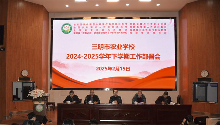 2月15日,三明市农业学校召开2025年春季学期开学中层干部会及全体教职工大会,对新学期工作进行全面部署。会议由副校长谢阳军主持,全校教职工齐聚一堂,共同谋划新学期的发展蓝图。
