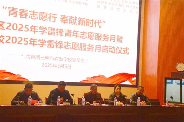 为深入学习贯彻党的二十大和二十届二中、三中全会精神,全面落实习近平总书记关于深入开展学雷锋活动的重要指示,进一步弘扬“奉献、友爱、互助、进步”的志愿精神,3月5日下午,“青春志愿行,奉献新时代”沙县区2025年学雷锋青年志愿服务月暨三明农校2025年学雷锋志愿服务月启动仪式在三明农校报告厅举行。沙县团区委副书记朱慧敏和学校党委委员、副校长陈文优等德育部门处室领导及师生代表共计200余人参加活动。启动仪式由校团委书记官炳火主持。